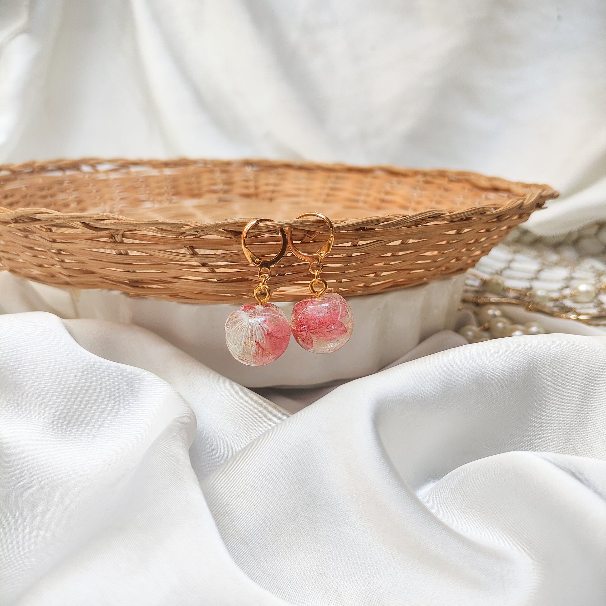 These stylish earrings will add a fun touch to any outfit. Made with resin art and flowers, they are sure to turn heads with their unique design. Love and attractions come together to make these earrings the perfect accessory for any occasion.