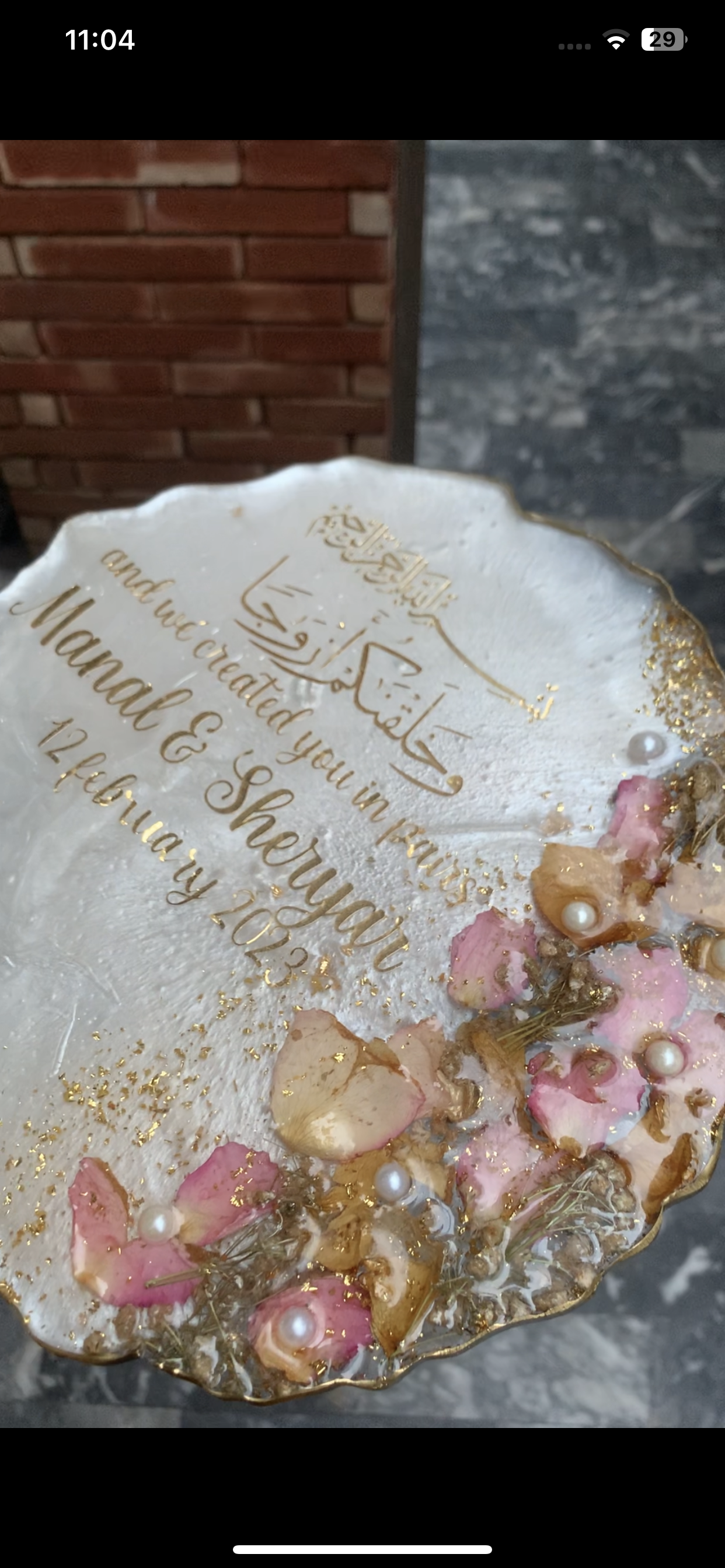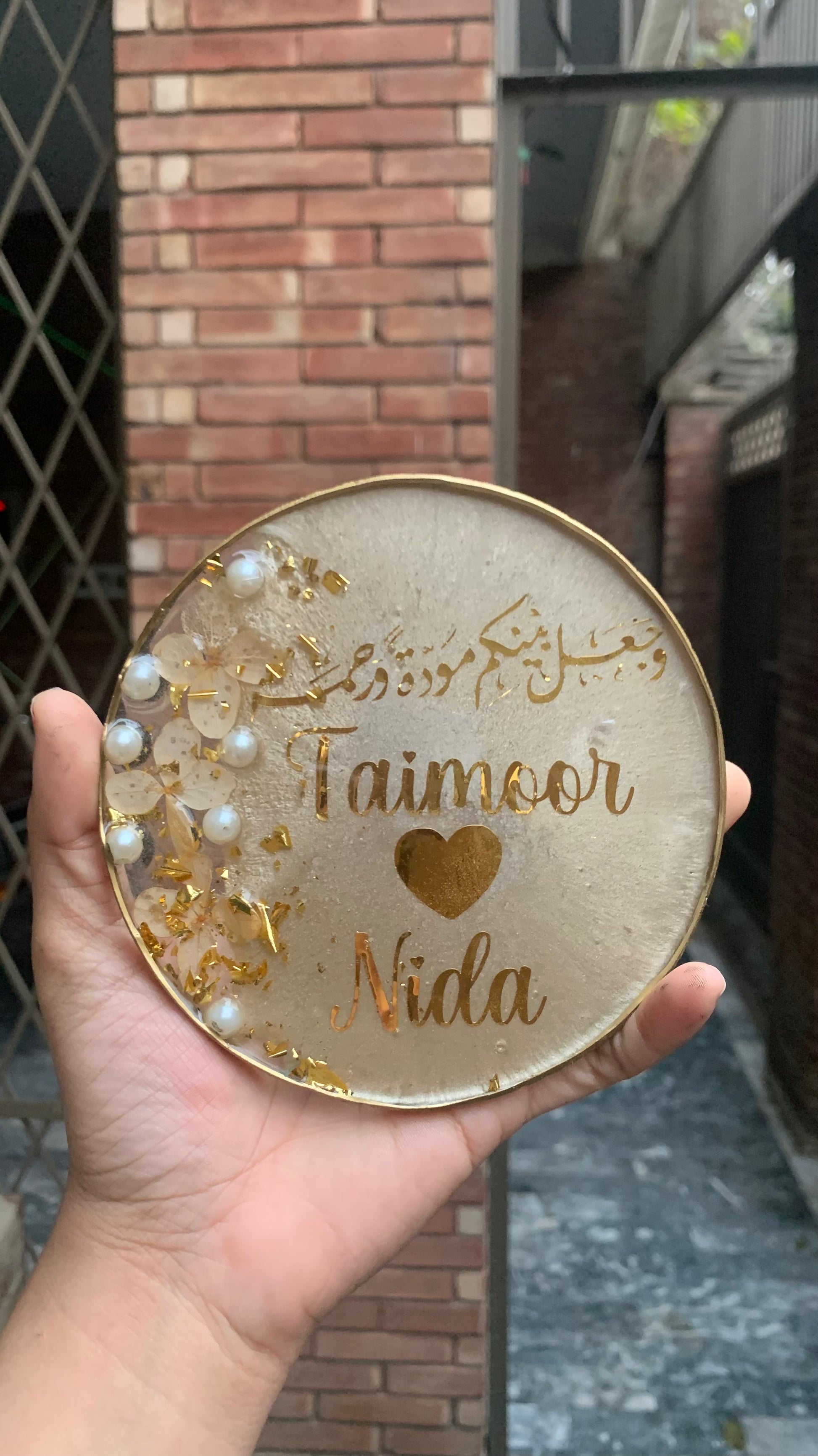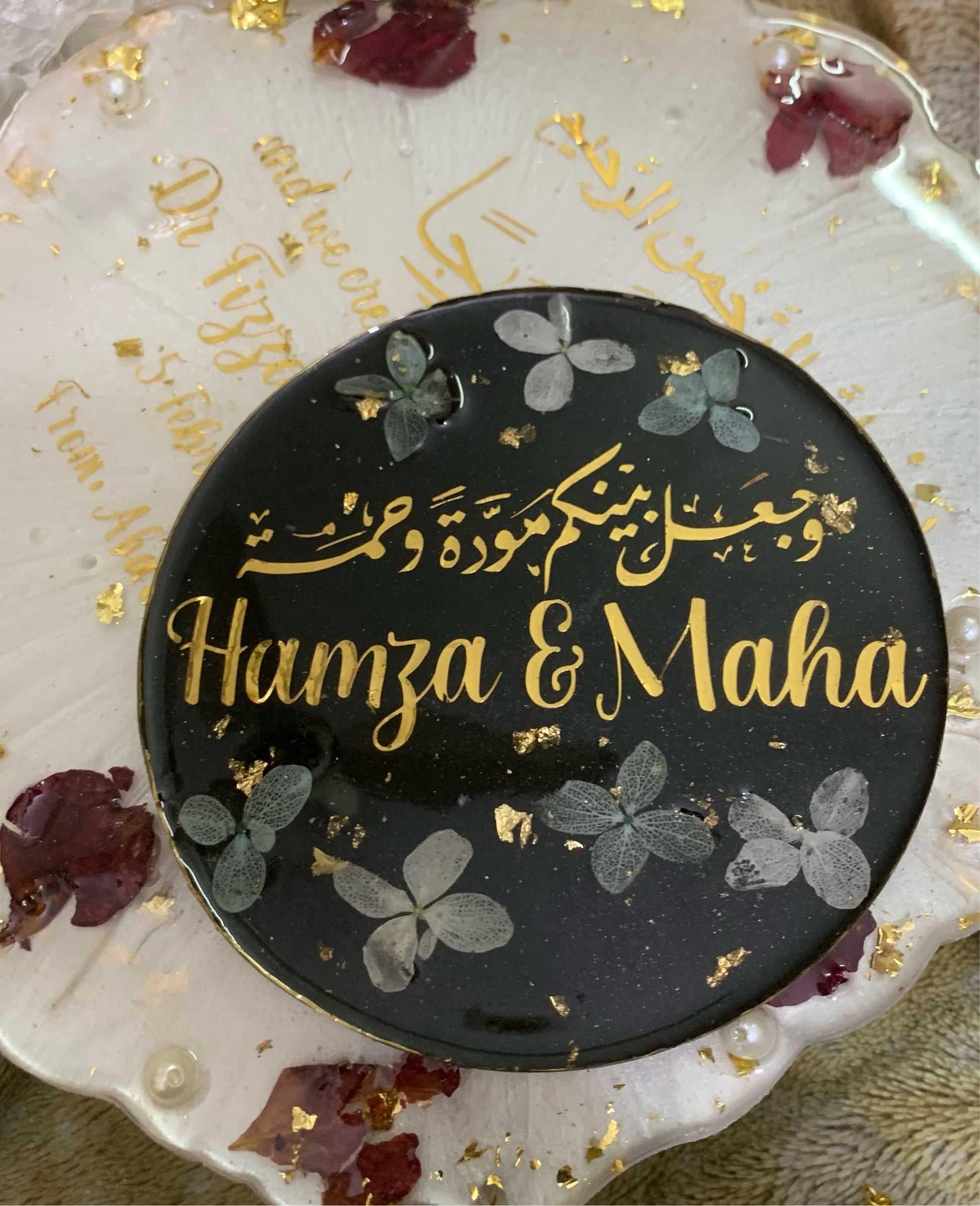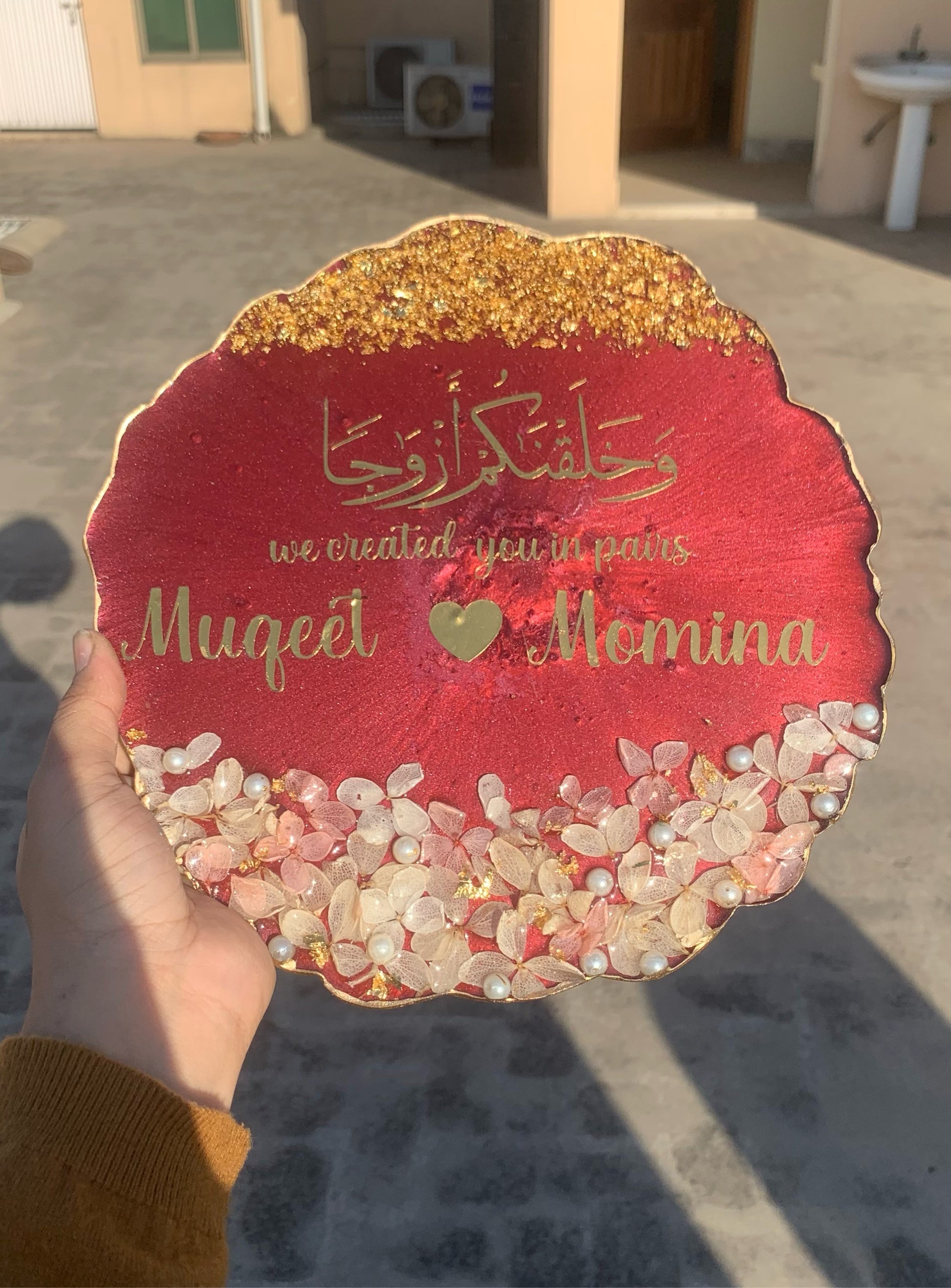 This Elegant 3D Floral Plaque will make the perfect gift for a couple on their engagement or nikkah day. Handcrafted with intricate detail, the plaque displays the couple's name and date of the special occasion. A perfect way to commemorate the celebration and a token they can cherish forever.