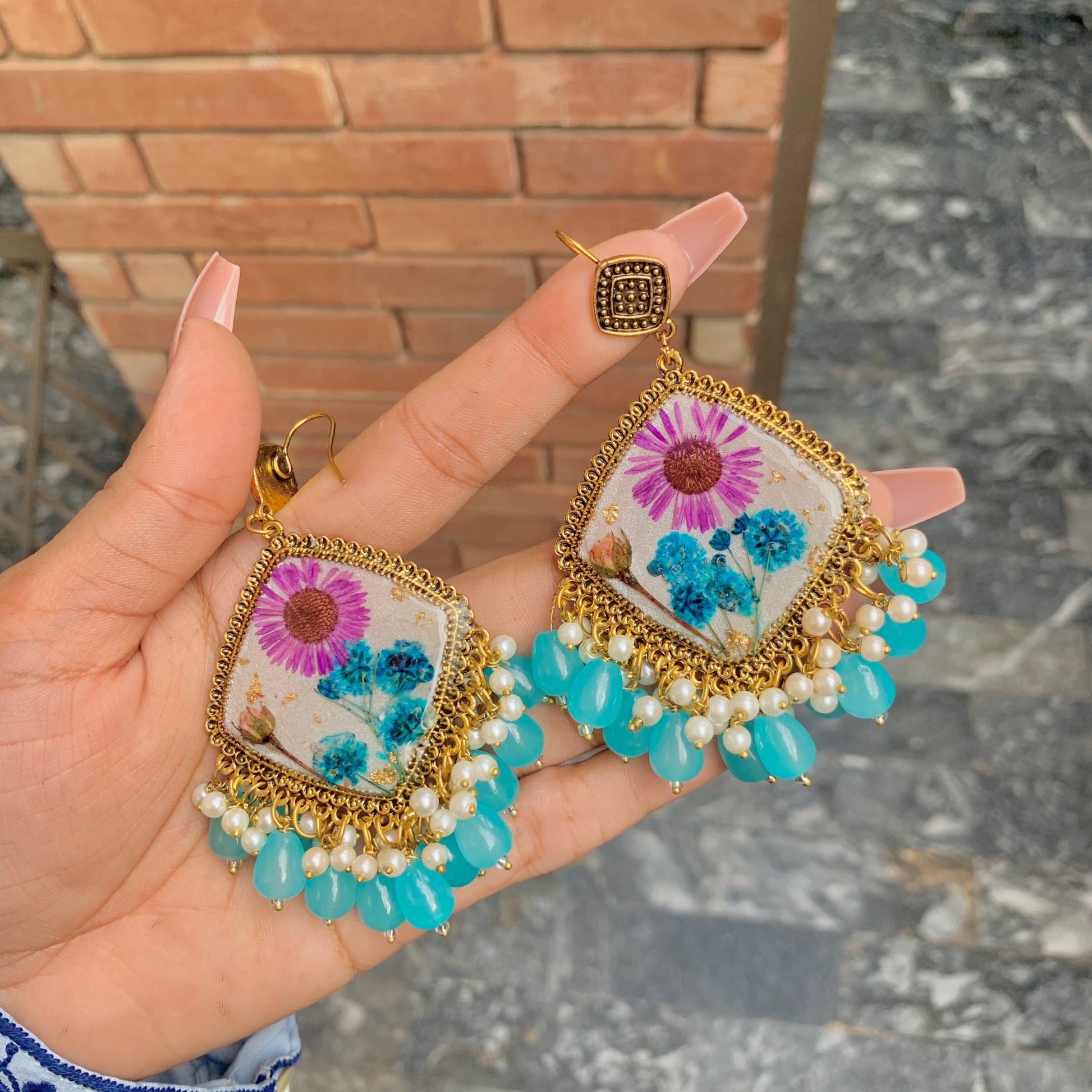 This set includes Jhumka, adjustable ring, bracelet and pendant.