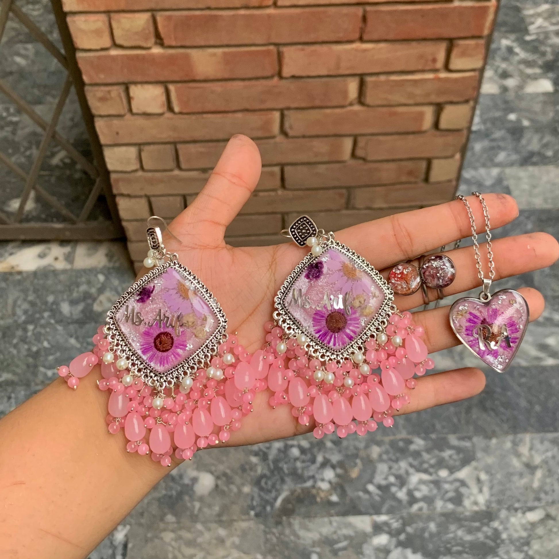 It can be customised in any colour. It includes Jhumka, pendant and a ring.
